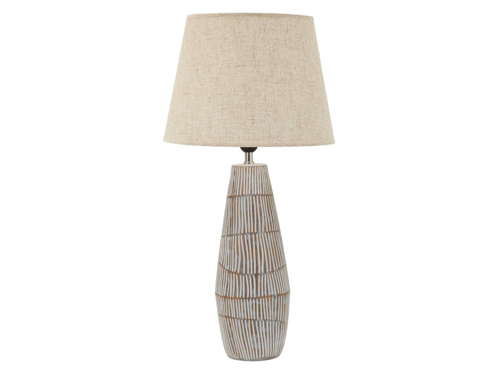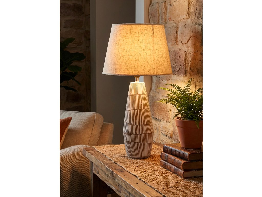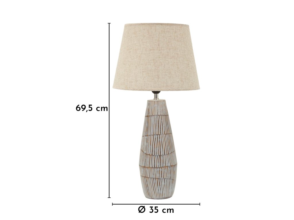 Vyrobená je z kvalitného polyresinu, kovu a textilného ľanového tienidla, čo zaručuje stabilitu, odolnosť a ľahkú manipuláciu, pričom tienidlo jemne filtruje svetlo a vytvára útulnú, relaxačnú atmosféru. Lampa Hanoi je všestranná – môžete ju položiť na stôl, komodu, nočnú skrinku alebo ju použiť ako dekoratívny objekt v obývačke, spálni či pracovni.