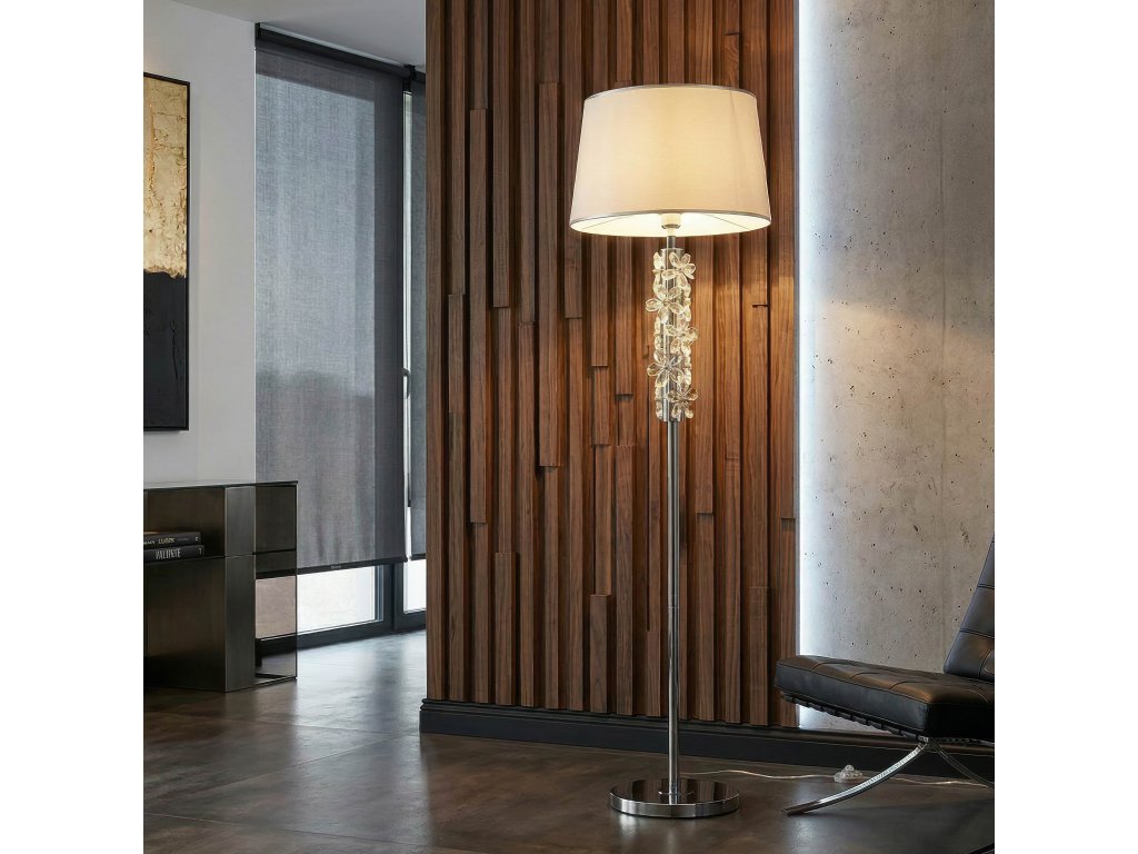 Stojacia lampa Mauro Ferretti Flower je štýlový svetelný doplnok, ktorý spája sofistikovaný dizajn s dekoratívnymi detailmi. Vďaka svojej striebornej kovovej konštrukcii a kvetinovým dekoráciám pôsobí luxusne a zároveň veľmi elegantne.