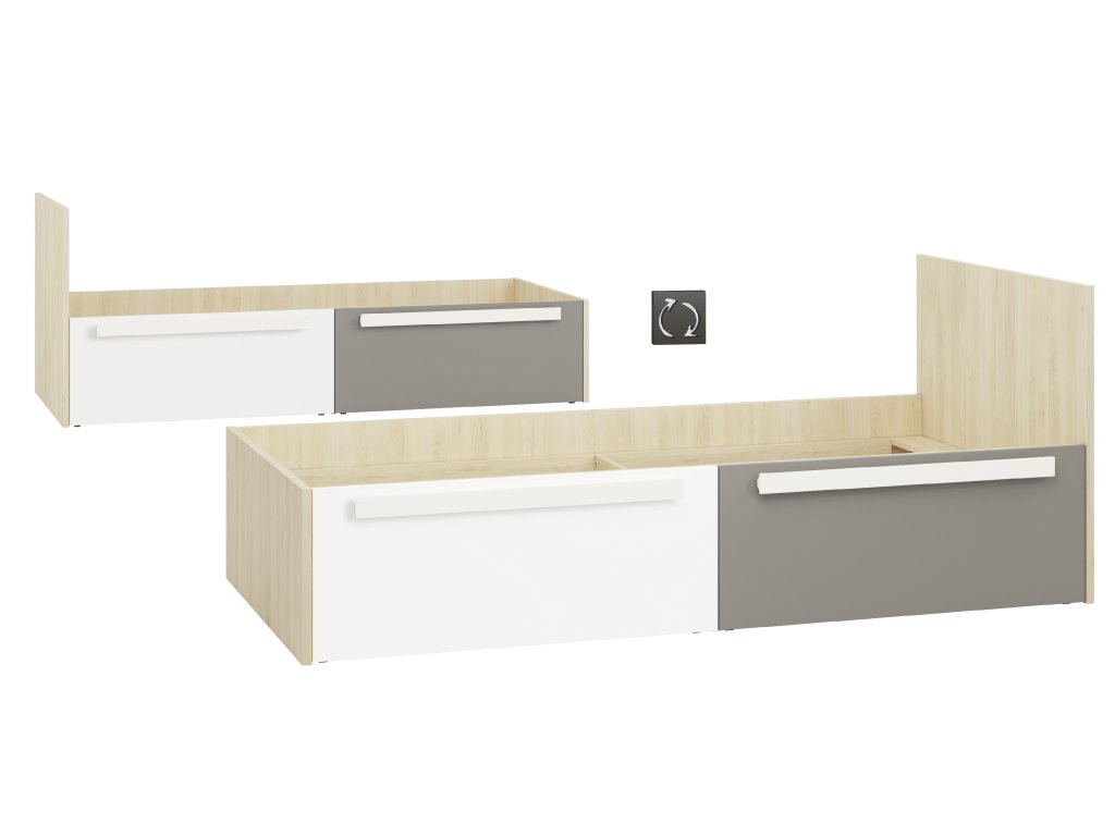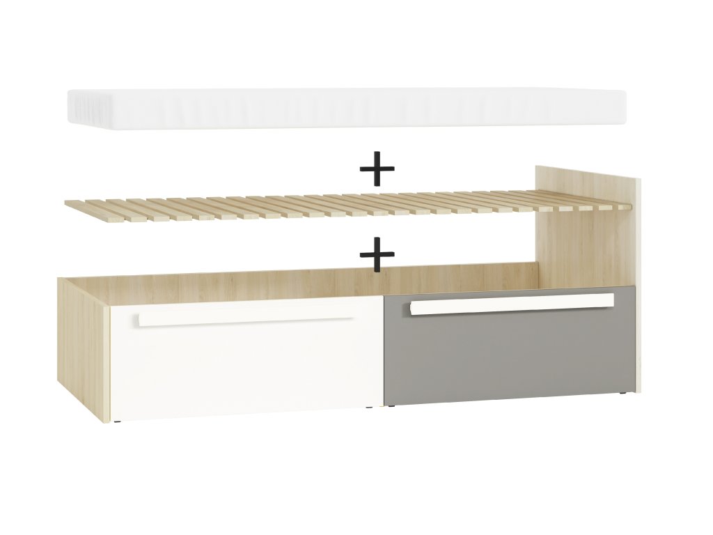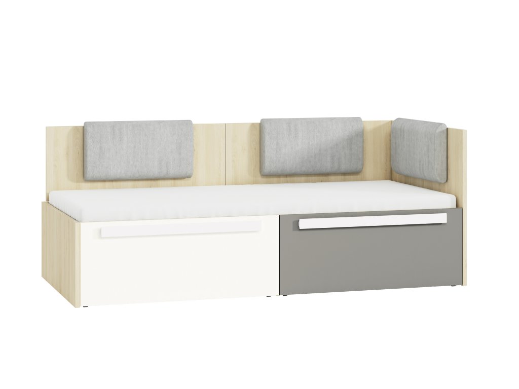 Posteľ Drop – študentská posteľ v dekore buk fjord / biela / sivá 90 × 200 cm