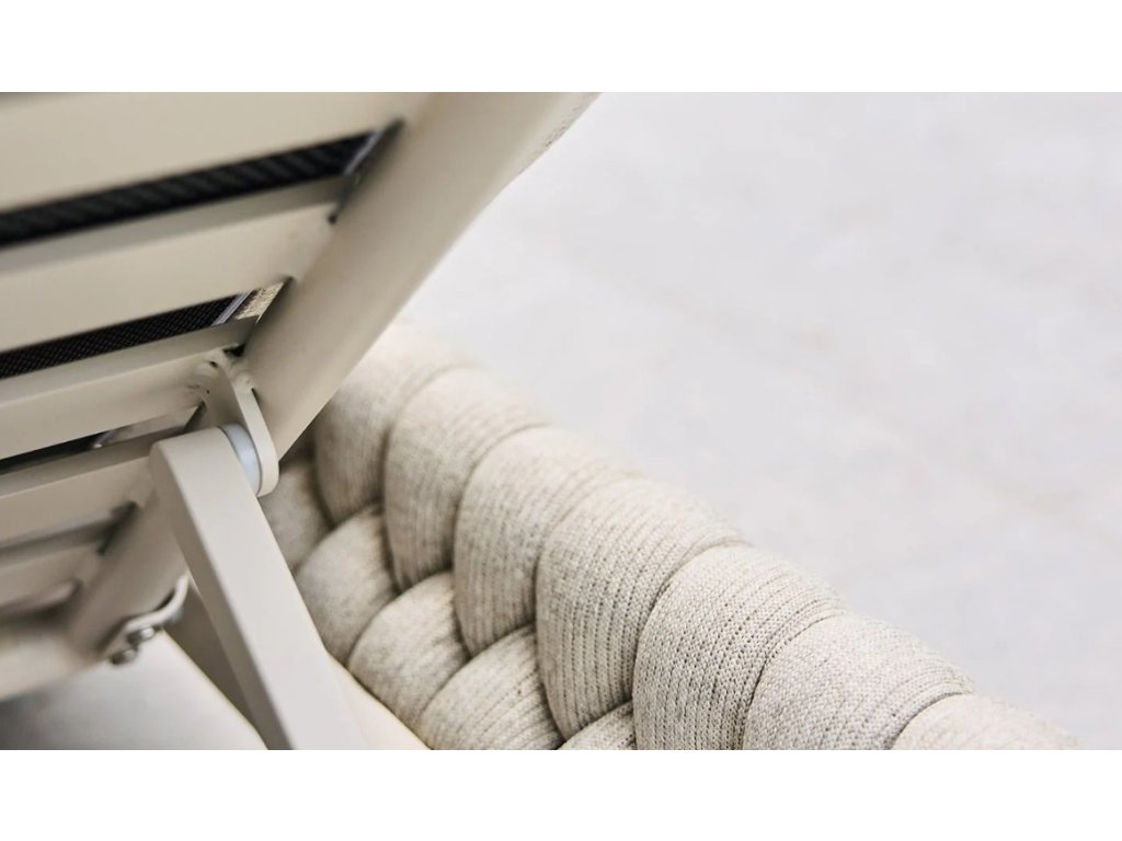 Tento model využíva prvky z kolekcie SUNS Sato, ktorá je charakteristická hravým výpletom a pohodlnými vankúšmi s výplňou Quick Dry Foam®, ktorá rýchlo odvádza vlhkosť a rýchlo schne po daždi. Vysokokvalitná látka poťahu je vodoodpudivá, odolná voči UV žiareniu a ľahko sa čistí, čo zabezpečuje, že lehátko zostane elegantné a pripravené na použitie bez ohľadu na poveternostné podmienky.