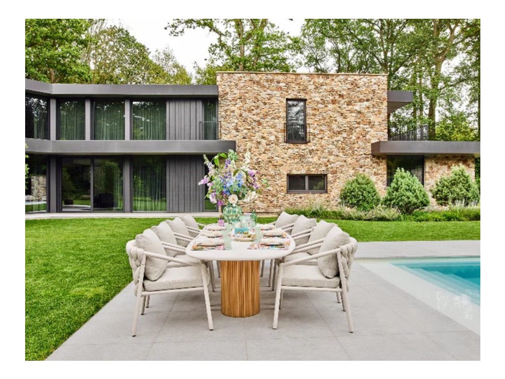 Neolith Light Taupe predstavuje jemný prírodný odtieň, ktorý sa harmonicky kombinuje s rôznymi štýlmi záhradného nábytku a prirodzene zapadá do moderných aj prírodných exteriérov.
