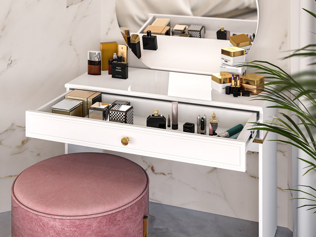 Vďaka svojim rozmerom poskytuje dostatok priestoru na každodennú starostlivosť o krásu, líčenie či uskladnenie kozmetiky a doplnkov. Je ideálnym doplnkom do spálne alebo šatníka, kde vytvorí štýlový a funkčný beauty kútik.