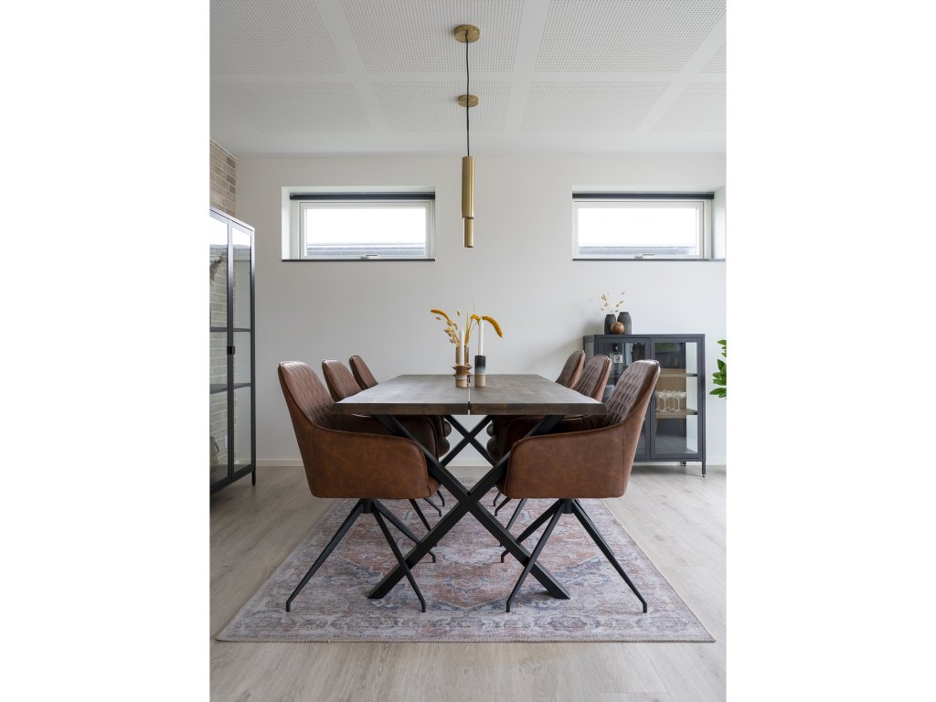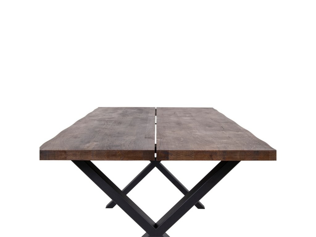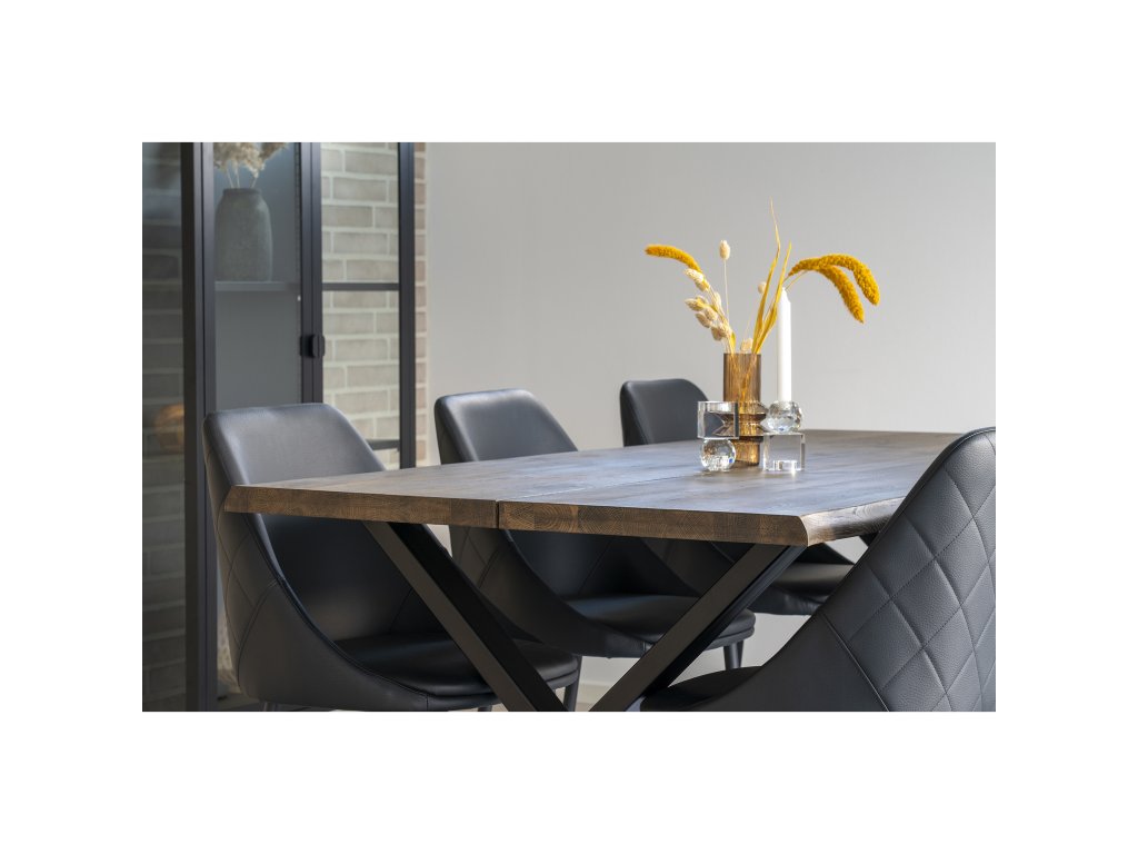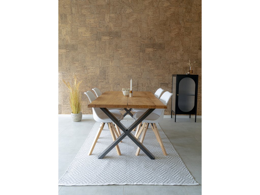 Kombinuje prírodný dub s odolnými oceľovými nohami, čo zaručuje stabilitu, trvácnosť a pevnosť. Vlnitý okraj dodáva stolu moderný a sofistikovaný charakter, zatiaľ čo možnosť výberu farby – hnedá alebo prírodná umožňuje stôl dokonale prispôsobiť štýlu vášho interiéru. Stôl je pripravený pre rozkladacie dosky, čo zvyšuje jeho všestrannosť.