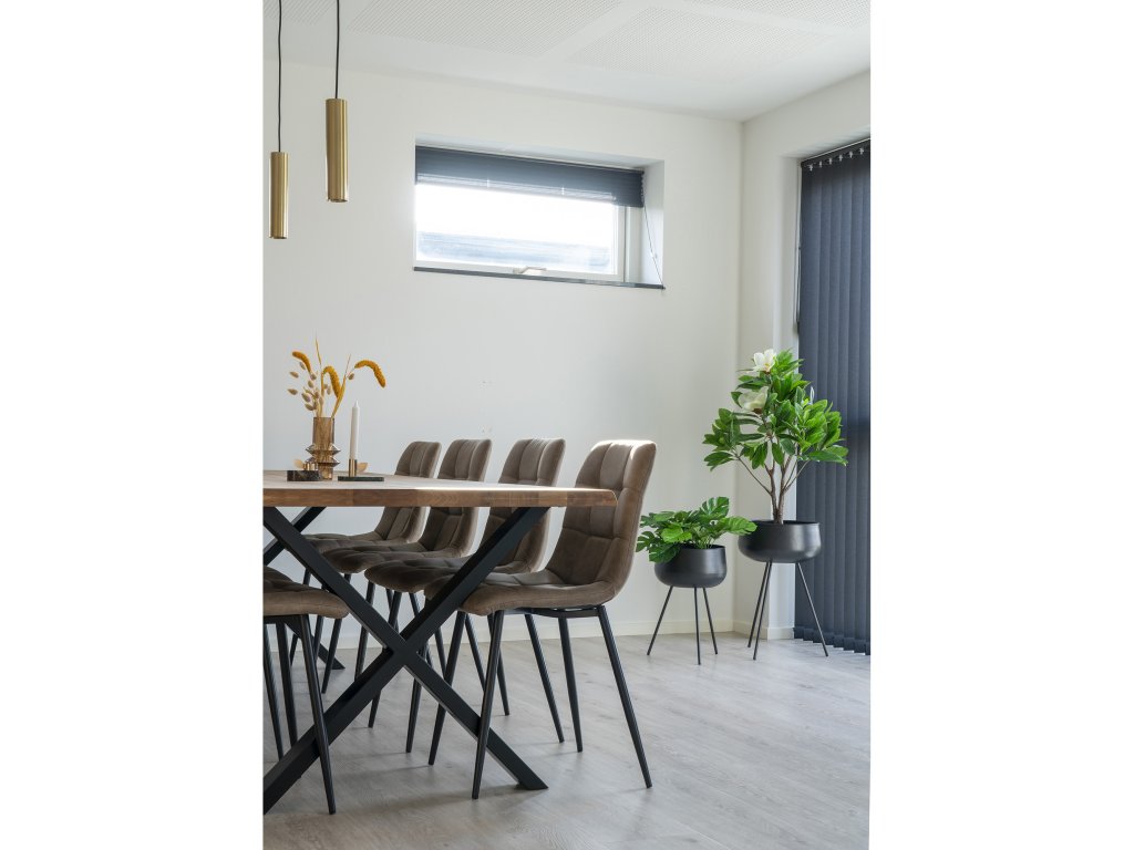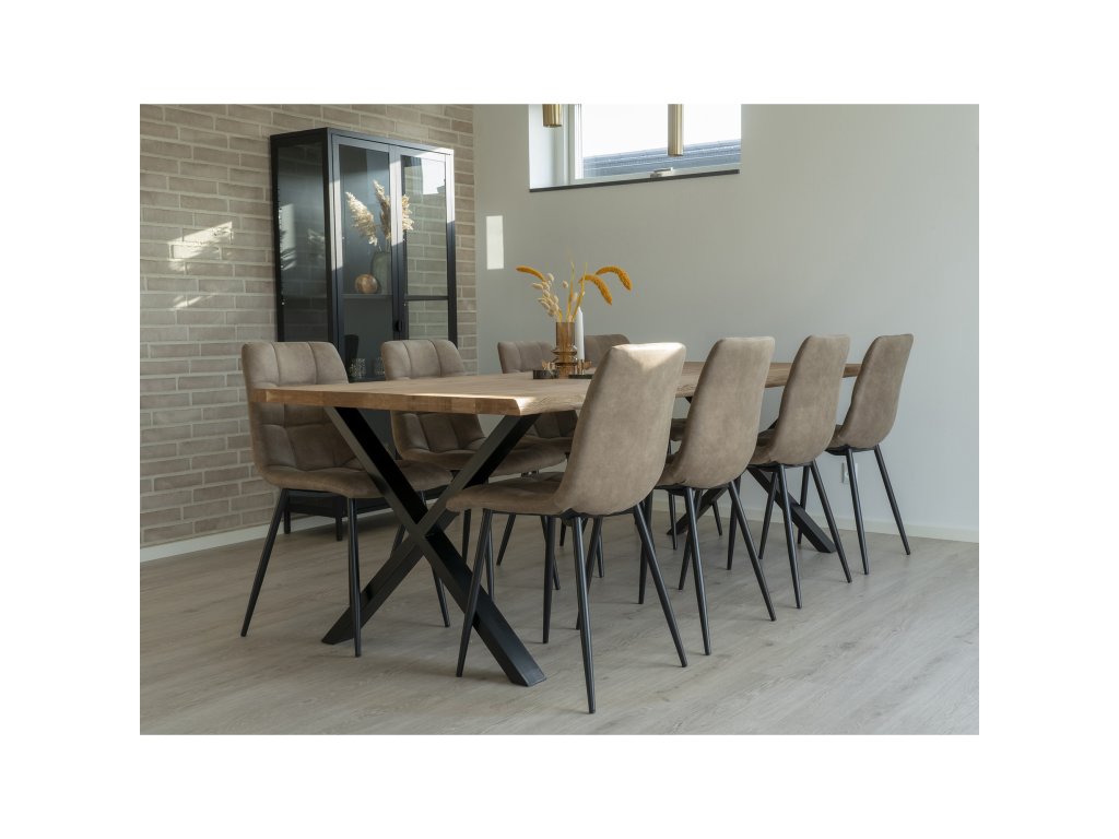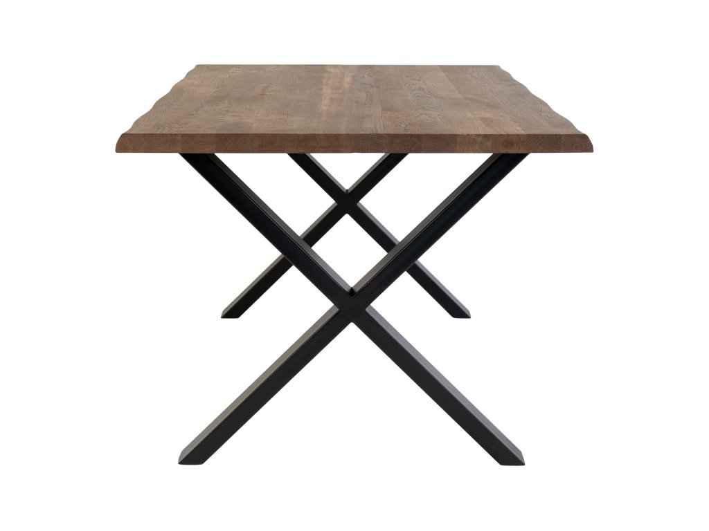 Kombinuje prírodný dub s odolnými oceľovými nohami, čo zaručuje stabilitu, trvácnosť a pevnosť. Vlnitý okraj dodáva stolu moderný a sofistikovaný charakter, zatiaľ čo možnosť výberu farby – hnedá alebo prírodná umožňuje stôl dokonale prispôsobiť štýlu vášho interiéru. Stôl je pripravený pre rozkladacie dosky, čo zvyšuje jeho všestrannosť.