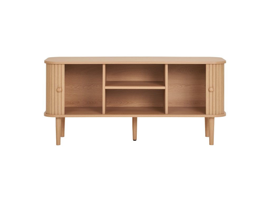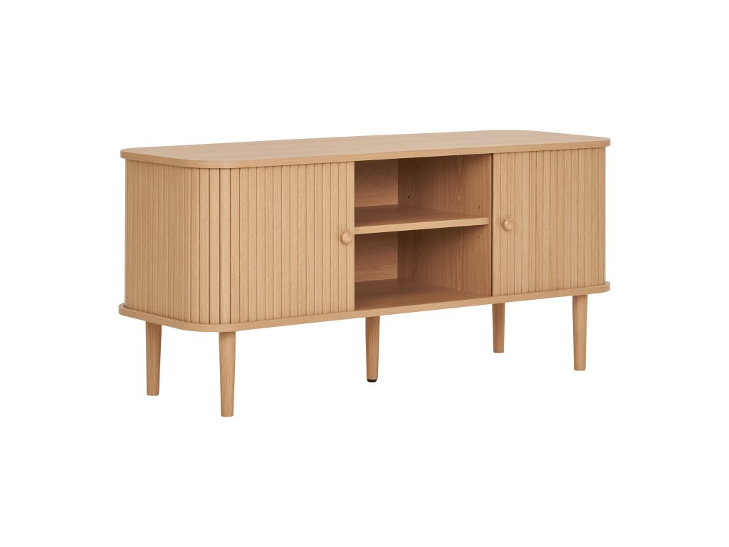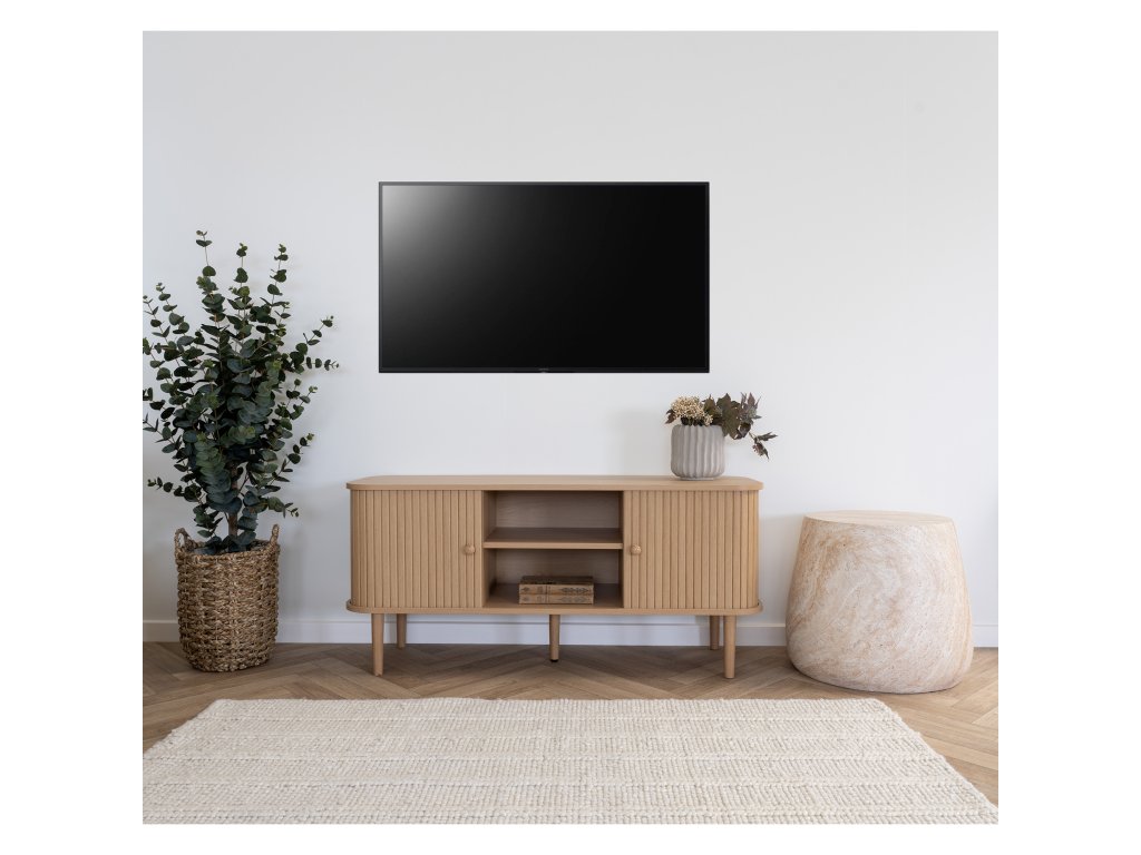 Nikko TV komoda je vybavená 2 dvierkami, za ktorými sa skrýva praktický úložný priestor. Ten využijete na multimediálne zariadenia, knihy alebo dekorácie. Prírodná farebná úprava v kombinácii s borovicovým rámom dodáva skrinke svieži, škandinávsky vzhľad.