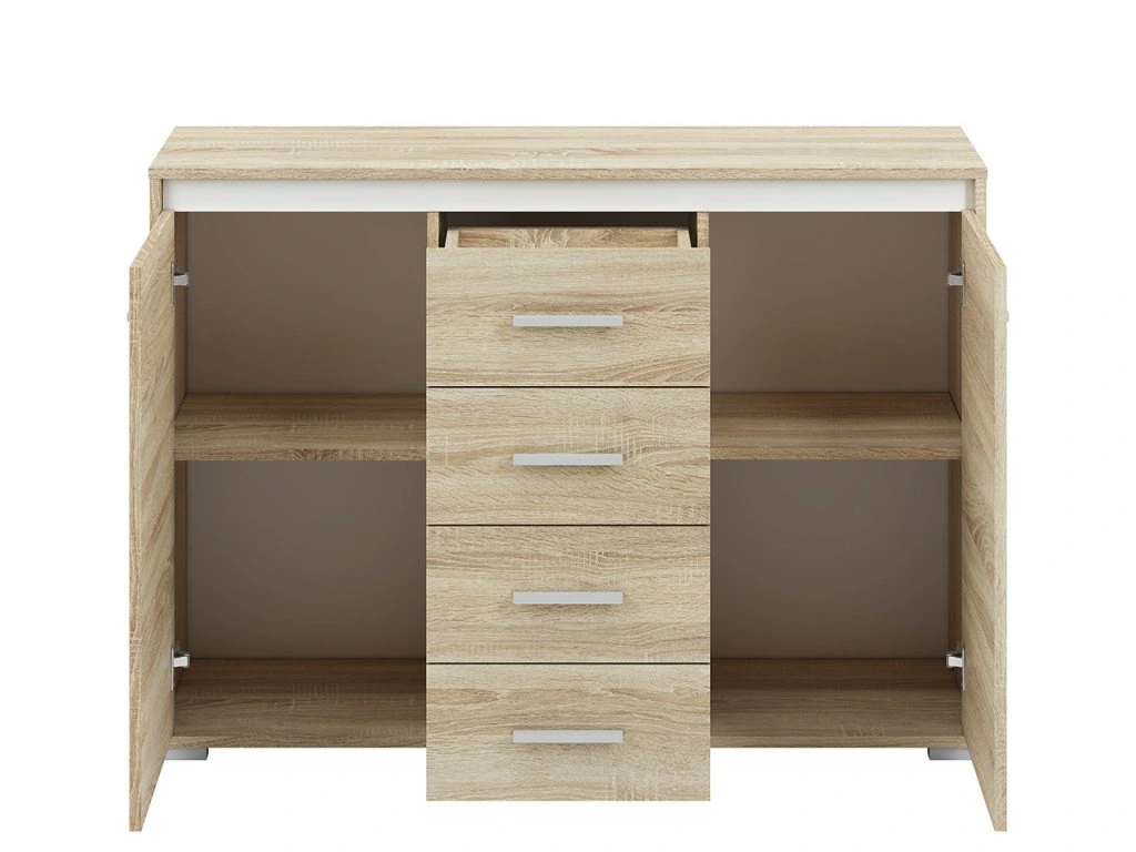 Úložná komoda Avo spája moderný minimalistický dizajn s praktickým využitím. Elegantný dekor Sonoma svetlá dodáva nábytku príjemný a nadčasový vzhľad, ktorý sa ľahko prispôsobí rôznym interiérom.
