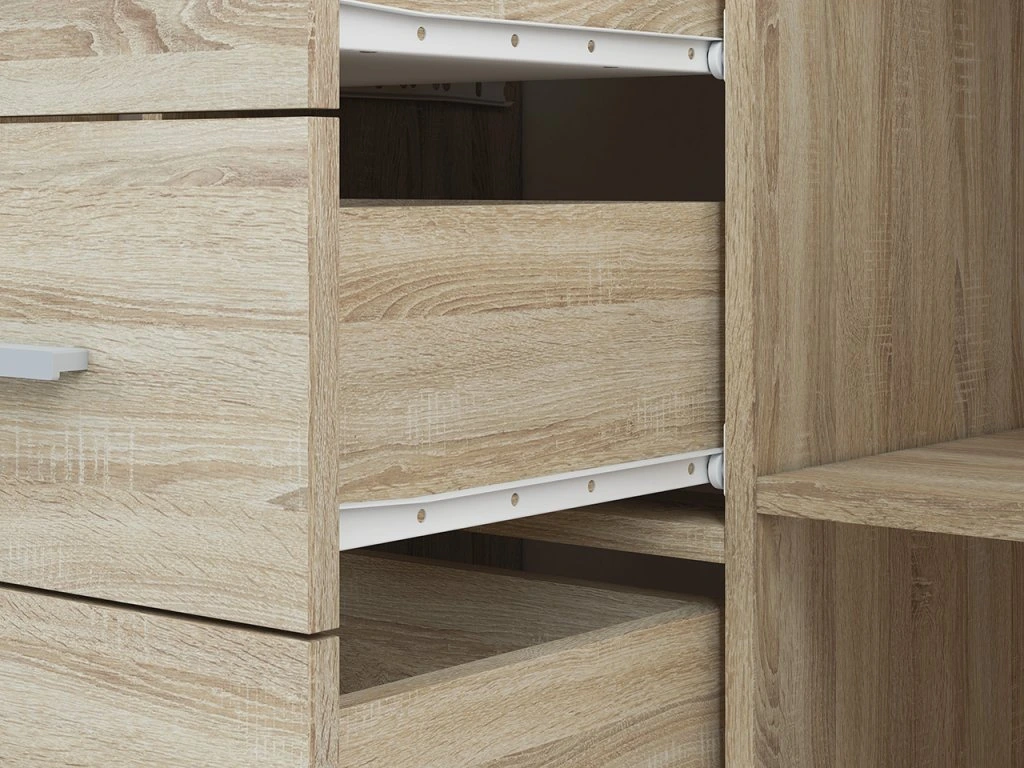 Jednou z hlavných výhod komody je možnosť meniť jej vzhľad podľa aktuálnej nálady alebo štýlu miestnosti. Súčasťou balenia sú 3 vymeniteľné farebné vložky (biela, antracit, sonoma svetlá), ktoré môžete kedykoľvek jednoducho obmeniť. Komoda poskytuje dostatok priestoru na uloženie oblečenia, doplnkov či dekorácií.