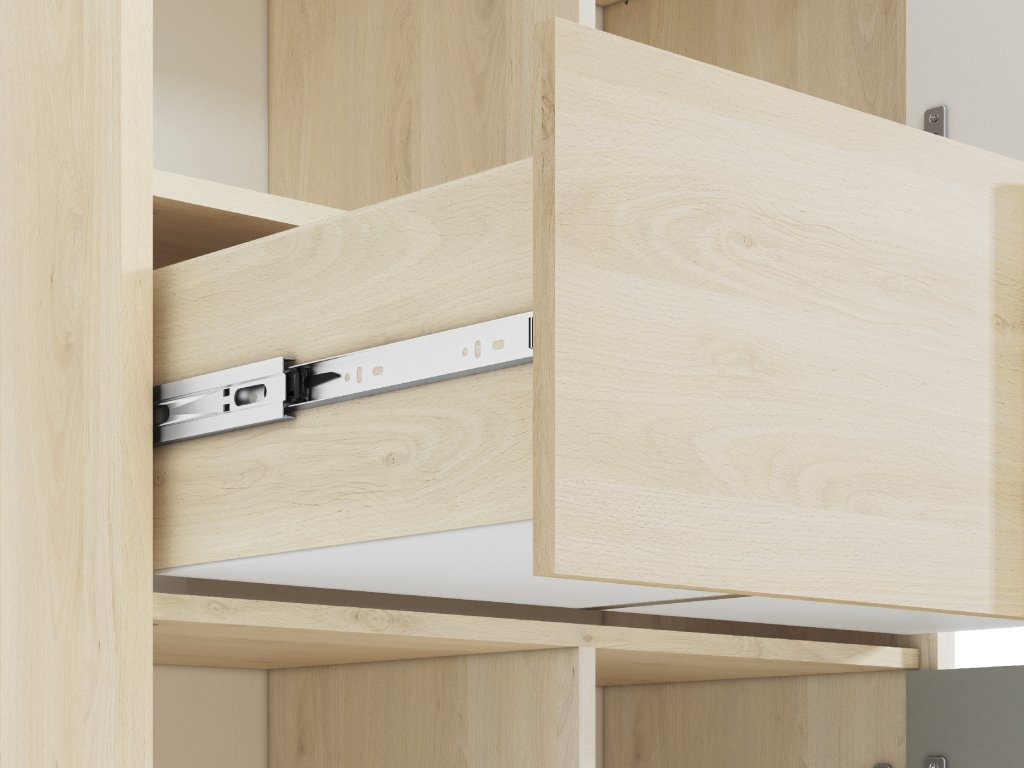 Vďaka menšej hĺbke je skriňa vhodná do priestorov, kde je potrebné šetriť miesto, no zároveň ponúka dostatok úložného priestoru na oblečenie, doplnky či školské potreby. Vnútorné usporiadanie umožňuje prehľadné uloženie vecí a jednoduchý prístup k nim.