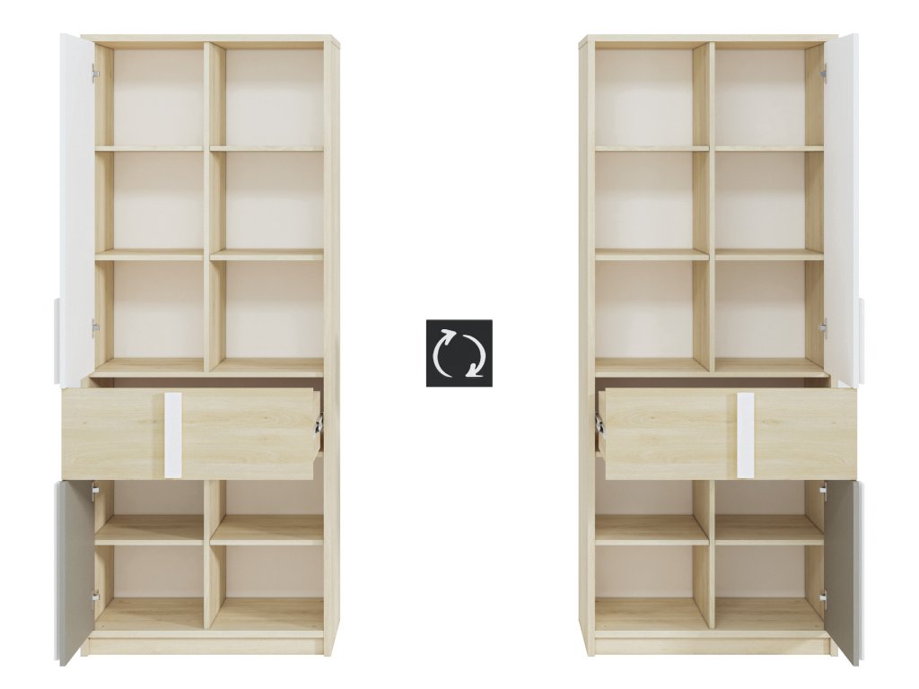 Skriňa Drop – úzka dvojdverová skriňa v dekore buk fjord / biela / sivá