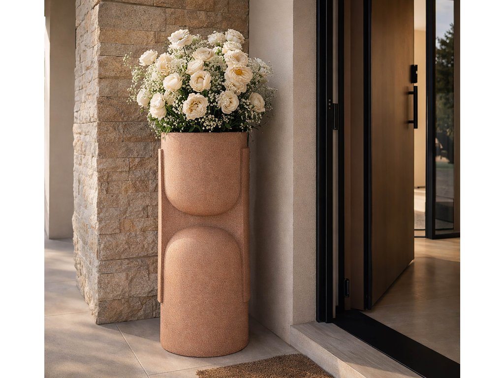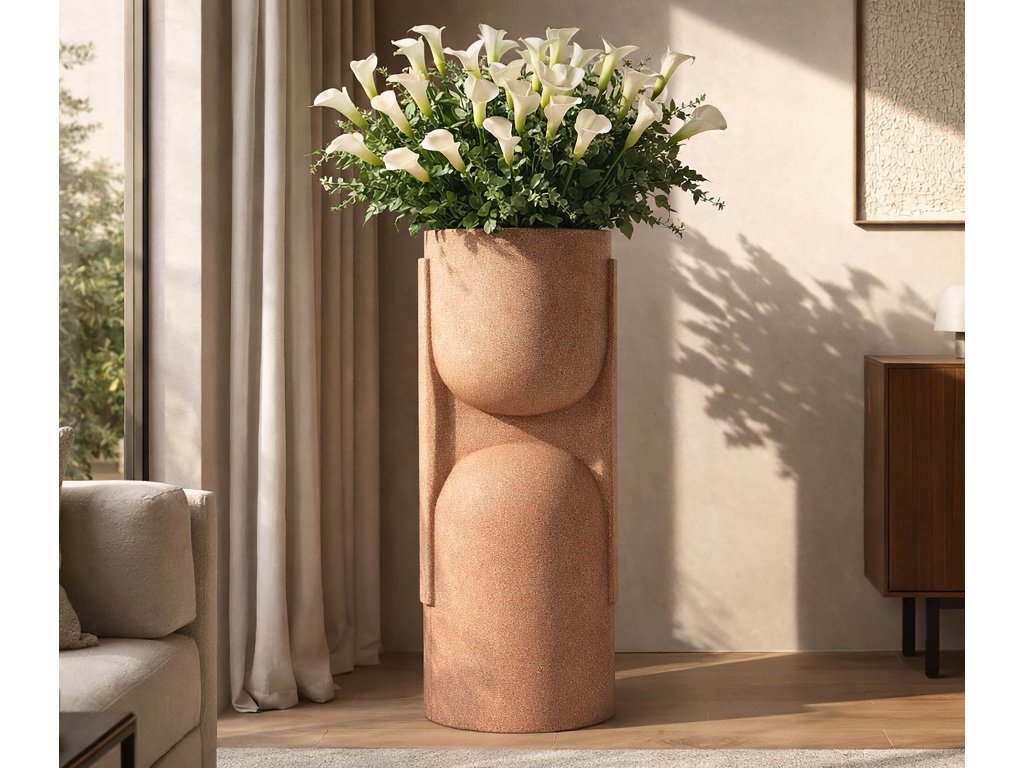 Váza je vyrobená z polyresinu, odolného materiálu vhodného do vonkajších aj vnútorných priestorov. Skvele sa hodí na terasu, balkón, k bazénu, do zimnej záhrady či do moderného obývacieho priestoru. Vďaka veľkorysým rozmerom a širokému otvoru je ideálna na väčšie rastliny, výrazné aranžmány alebo ako samostatný dizajnový objekt.