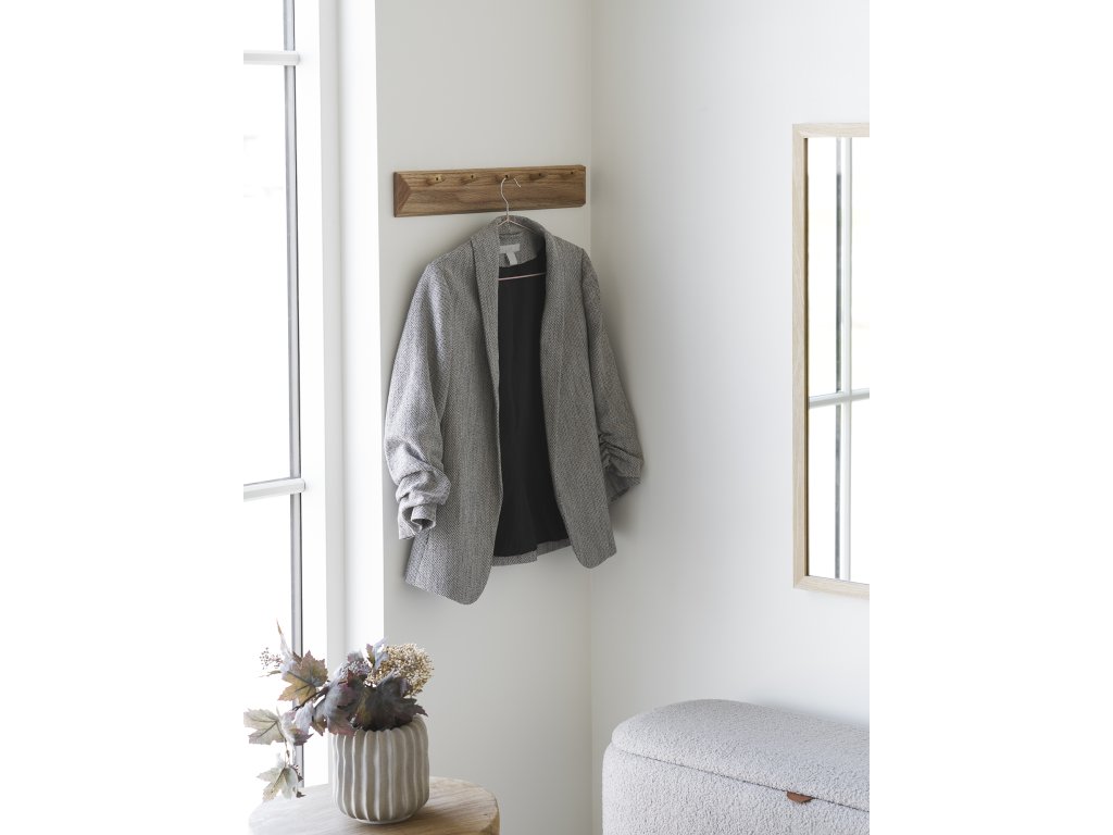 Vyrobený z masívneho dubového dreva, vešiak Barco je stabilný a odolný, pričom prirodzený dubový odtieň dodáva interiéru teplý a nadčasový vzhľad. Jeho povrch je hladký a príjemný na dotyk, zároveň odolný voči bežnému používaniu.