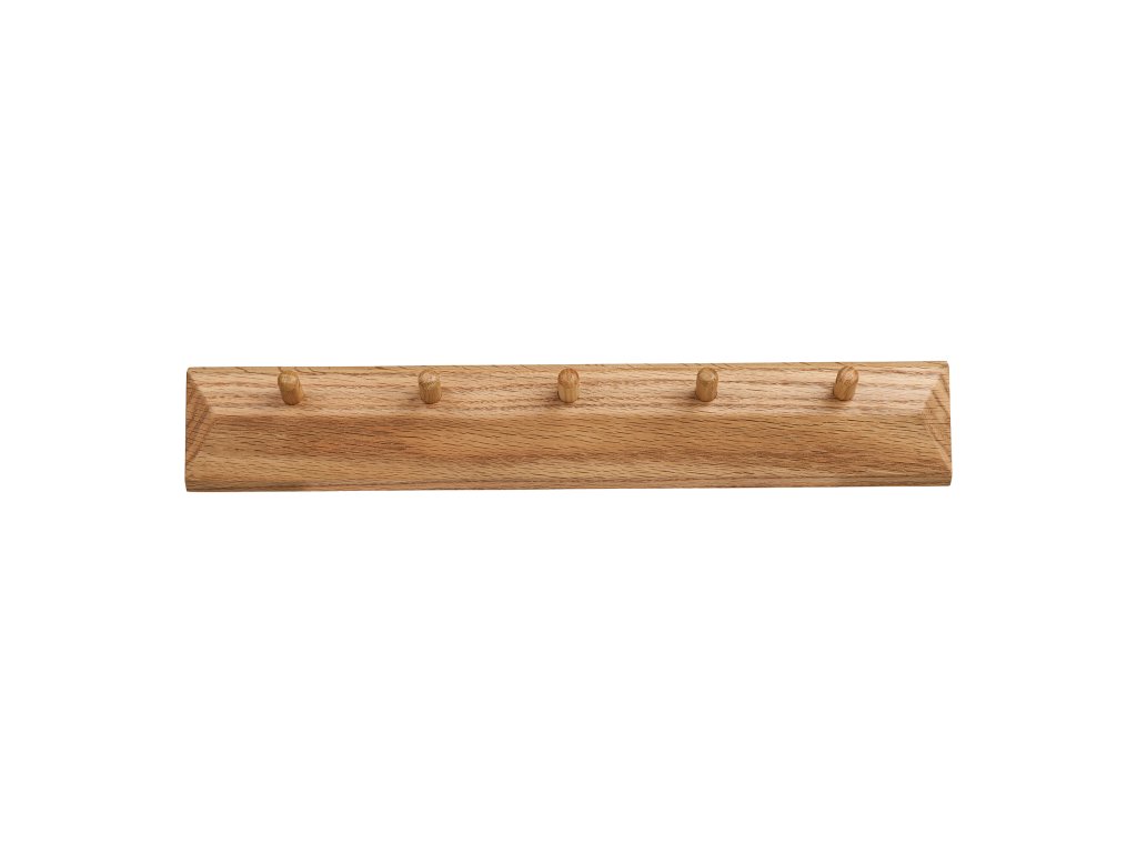 S rozmermi 50 × 5,5 × 8,5 cm je tento vešiak štíhly, no zároveň funkčný, vhodný do menších aj väčších priestorov. Päť pevne osadených háčikov umožňuje pohodlné uloženie viacerých kusov oblečenia bez preplnenia priestoru.