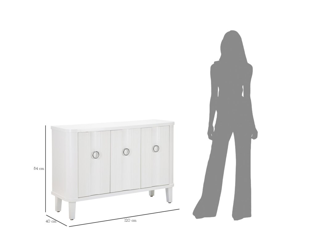 Komoda SHIINE je štýlový a praktický kus nábytku, ktorý skvele doplní váš interiér. Táto elegantná komoda je vyrobená z kvalitného materiálu s bielym povrchom, čo jej dodáva moderný a svieži vzhľad. Jej rozmery sú 120 cm na šírku, 40 cm na hĺbku a výška 84 cm, čo z nej robí ideálny úložný priestor do obývačky, spálne alebo predsiene.