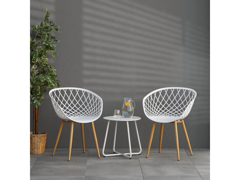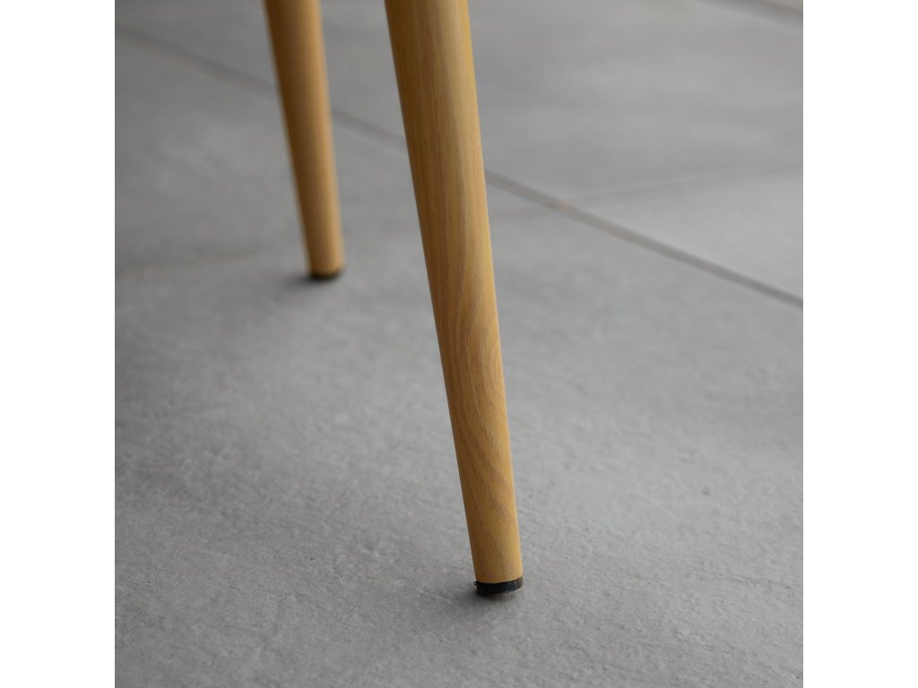 Štýlové stoličky ponúkajú dokonalú kombináciu moderného dizajnu a praktickej použiteľnosti, ideálne interiéru aj i záhrady, na terasu. Čierna sedacia časť v štýle sieťoviny im dodáva elegantný a vzdušný vzhľad a zároveň poskytuje dobré vetranie – ideálne pre horúce letné dni vonku. Robustné, odolné voči poveternostným vplyvom materiály zabezpečujú, že stoličky si udržia tvar aj farbu aj pri intenzívnom vonkajšom používaní. Vďaka ľahko čistiteľnému povrchu zostanú v perfektnom stave po mnoho rokov. Ergonomicky tvarované sedadlo a stabilné nohy v drevenom dekore ponúkajú vysoký komfort sedenia a bezpečnú stabilitu.