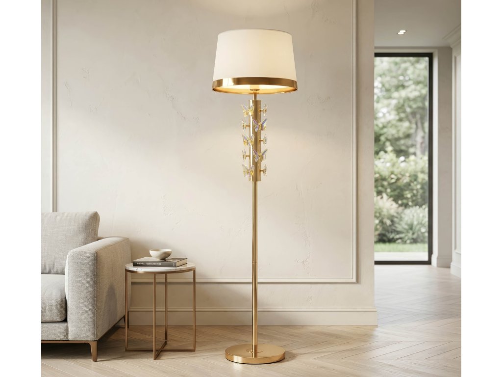 Stojacia lampa Butterfly je ideálna do obývačky, spálne alebo reprezentatívnych priestorov, kde poskytuje príjemné doplnkové osvetlenie a zároveň pôsobí ako výrazný dekoratívny prvok. Skvele sa hodí do glamour alebo moderných klasických interiérov.