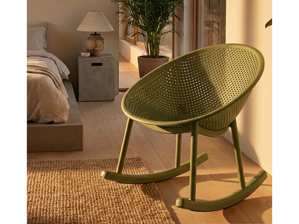 Ibiza Rocking Chair vyniká svojou fluidnou a prívetivou líniou, ktorá sa prirodzene prispôsobuje telu, a vytvára harmonický a sofistikovaný dojem. Elegantný tvar a hravá farebná kombinácia dodávajú kreslu vizuálnu ľahkosť a pohodlie, čím sa stáva ikonou moderného relaxu.