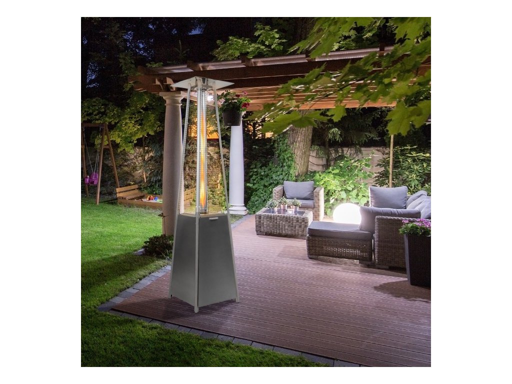 Plynový ohrievač je vyrobený z nehrdzavejúcej ocele, čo zabezpečuje dlhšiu životnosť zariadenia. Tuba je z kremenného skla. Ohrievač je napájaný plynom propán-bután. V balení sa nachádza hadica a regulátor potrebné na pripojenie fľaše. Ohrievač je vybavený transportnými kolieskami, ktoré uľahčujú jeho umiestnenie na ľubovoľné miesto. Ohrievaná plocha tohto modelu je 25 m². Zariadenie je ideálne na vyhrievanie oddychovej zóny na terase či v záhrade. Je to tiež vhodné riešenie na chladné večery v reštauračných záhradkách.