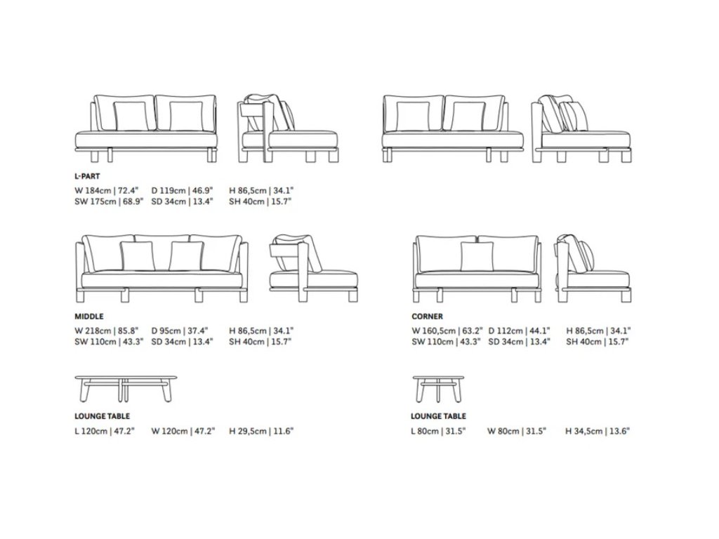 Rohový modul vytvára komfortné rohové sedenie a umožňuje vytvoriť plnohodnotnú lounge zostavu v tvare L alebo U.