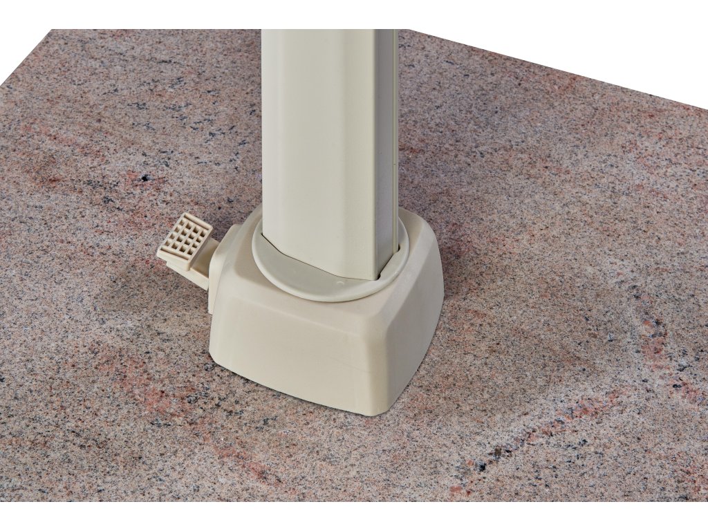 Slnečník sa vďaka otočnému mechanizmu otáča o 360 st. Týmto spôsobom môžete vždy otočiť slnečník smerom k slnku. Odlievaná hliníková kľuka poskytuje robustnosť systému pre dlhé roky používania.