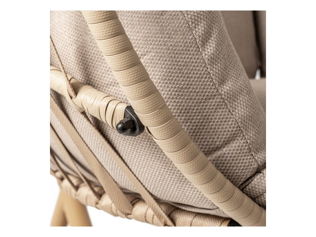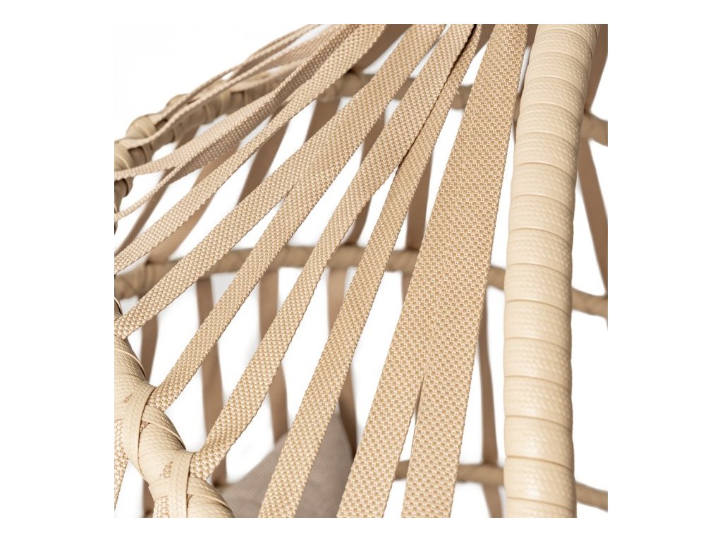 Závesná stolička Cocoon je elegantným a funkčným doplnkom každej záhrady. Vďaka modernej konštrukcii z vysoko kvalitnej práškovo lakovanej ocele poskytuje stolička nielen stabilitu, ale aj odolnosť voči poveternostným vplyvom. Rám koša a základňa stoličky sú vyrobené z masívnej ocele, čo zaisťuje odolnosť, zatiaľ čo práškový náter zaisťuje odolnosť proti korózii a poškriabaniu. Použitie tkaného lana na sedadlo a operadlo dodáva stoličke ľahký, no zároveň moderný vzhľad.