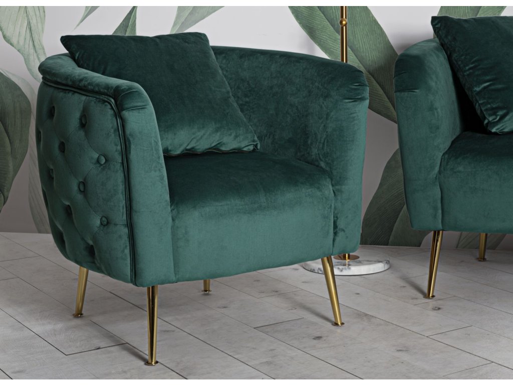 Zelené kreslo Bucarest – zamatová elegancia s nádychom Hollywoodu.