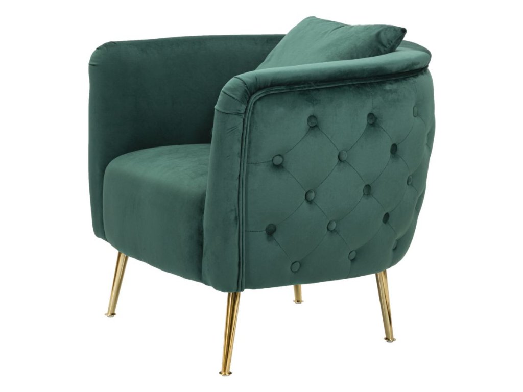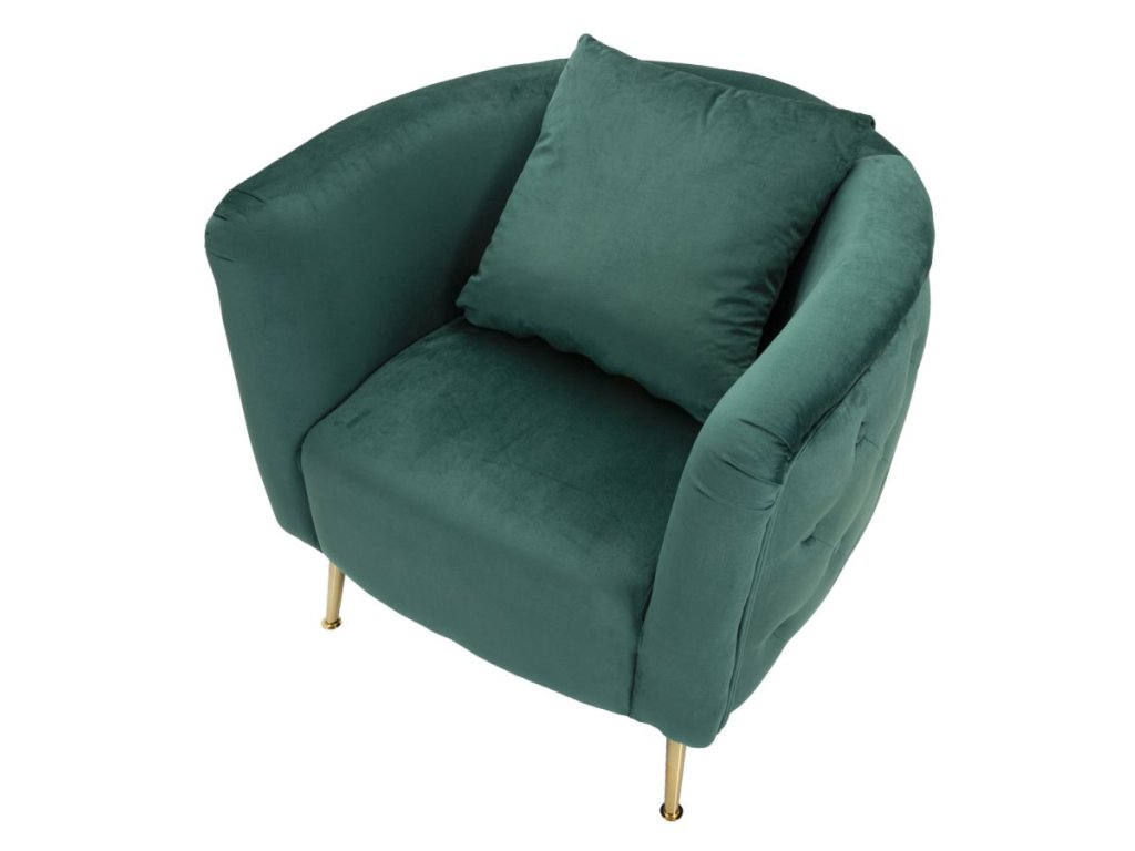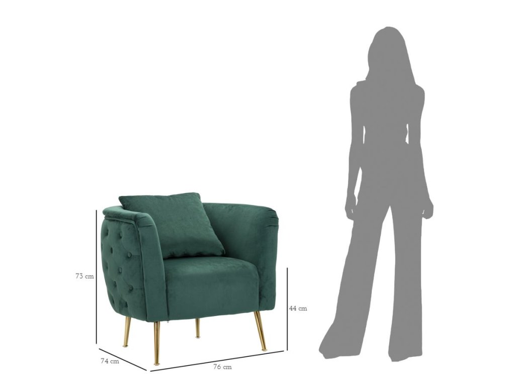 Súčasťou kresla je zelený vankúš, ktorý dopĺňa jeho pohodlie aj estetiku. Ideálne do spálne, obývačky alebo šatne, kde sa môžete cítiť ako skutočná diva.