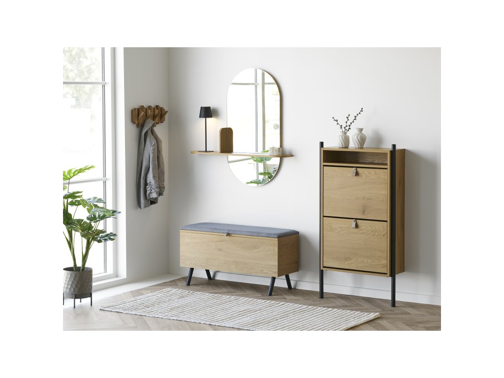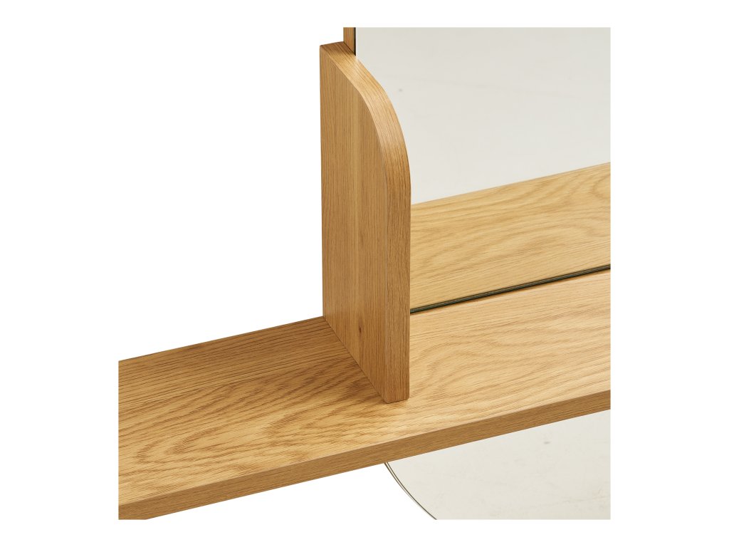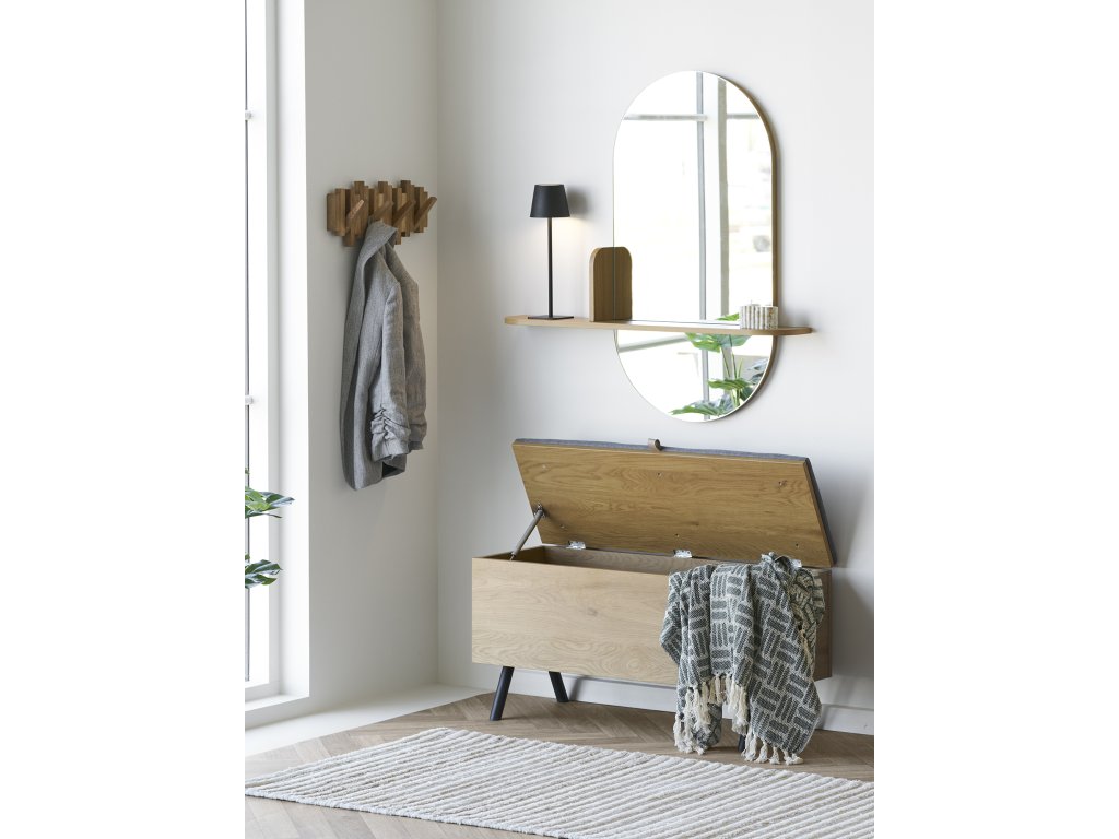 Zrkadlo Barco s policou v dubovom dekore je praktické nástenné zrkadlo s policou, ktoré spája jednoduchý dizajn a funkčnosť. Vďaka dubovému dekoru v prírodnom odtieni sa hodí ako zrkadlo do predsiene, zrkadlo do kúpeľne, zrkadlo do spálne aj zrkadlo do chodby. Integrovaná polica pod zrkadlom poskytuje priestor na každodenné drobnosti, kozmetiku alebo dekorácie.